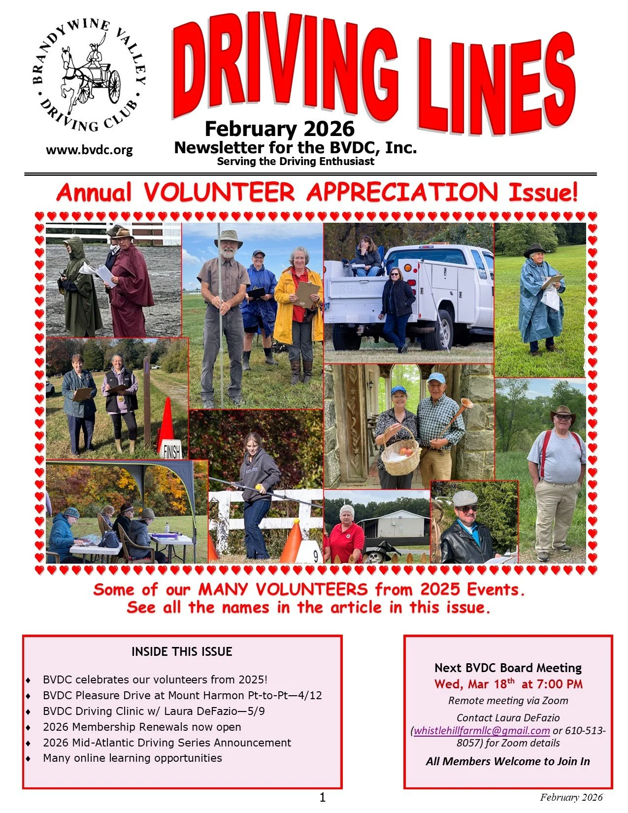 All members in good standing receive the club newsletter “Driving Lines” published monthly and distributed electronically via download from the website (or optionally in paper format mailed to you for additional cost).